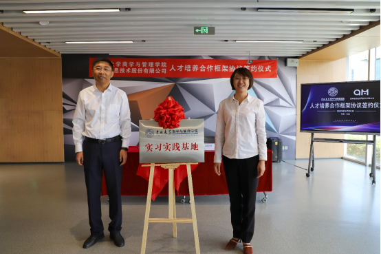 实习实践基地”协议,赵军书记与启明信息技术股份有限公司总经理曲红梅代表双方揭牌。
