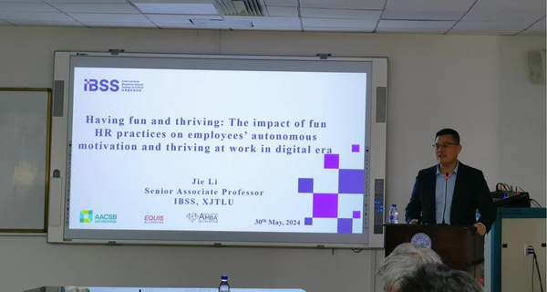 紧接着,西交利物浦大学商学院的厉杰教授发表了题为“Having fun and thriving: The impact of fun HR practices on employees’ autonomous motivation and thriving at work in digital era”的演讲。他探讨了在数字化时代,如何通过有趣的人力资源实践激发员工的自主动机和工作热情,从而提升企业的创新能力和竞争力。