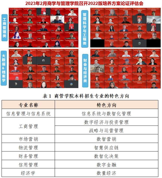 呼应数智社会的人才需求,学院积极进行专业优化,全面修订专业人才培养方案。为保障培养方案的科学性,学院组织了高校专家、用人单位管理者和优秀毕业生代表对培养方案进行全面评审,确定了培养方案课程体系进一步向数智化、实践化发展的方向,增加了大数据分析、人工智能、区块链技术等课程,并对传统的专业课程进行了内容更新,增加了数字和智能技术工具方法运用的内容。经过两年的专业优化,工商管理、市场营销、物流管理、财务管理、信用管理、经济学等本科专业明确了专业的数智化培养特色和方向。