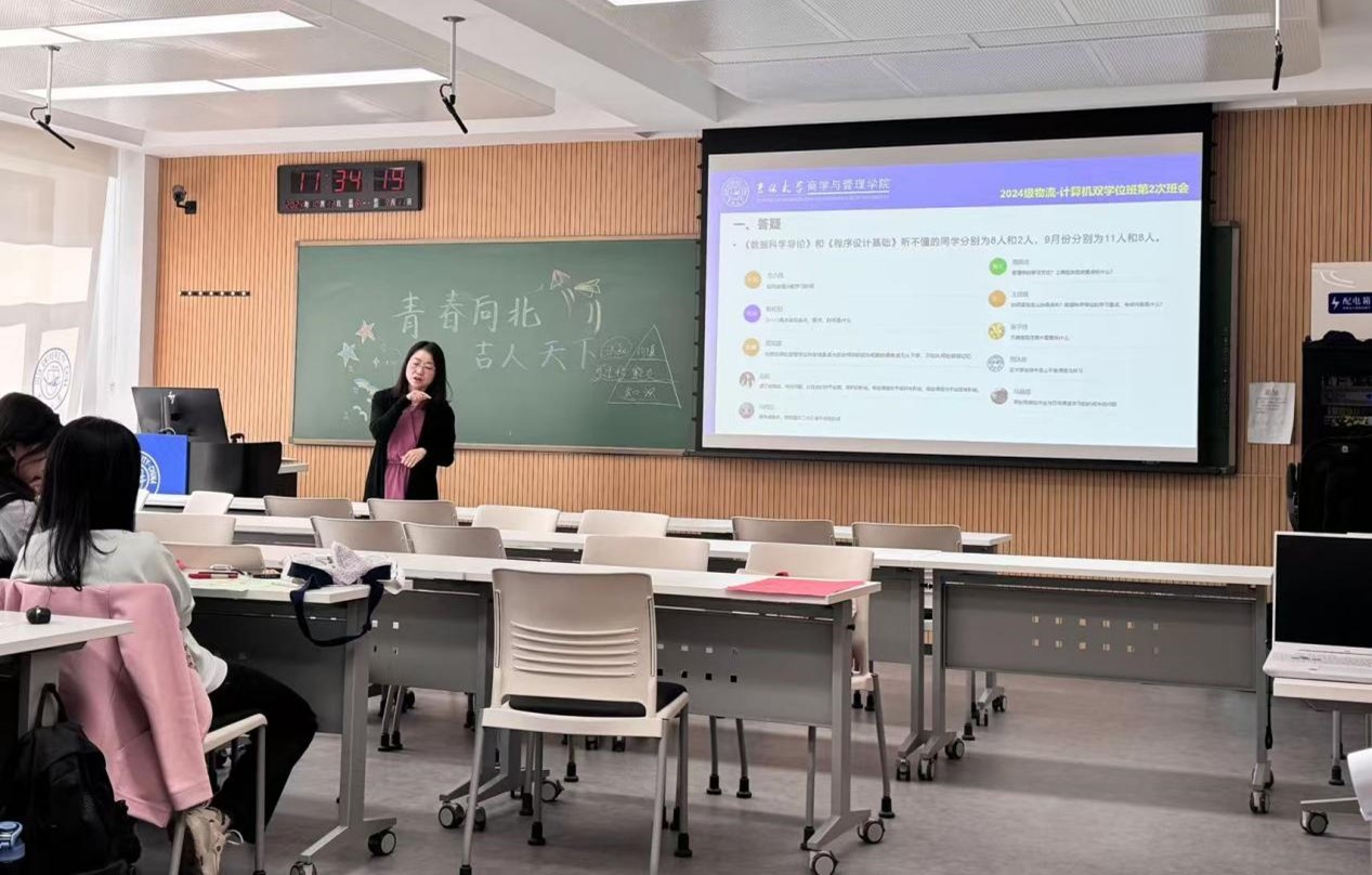 在敬信楼C111召开2024级“物流-计算机”双学位班心理团辅暨“青春向北,吉人天下”主题班会活动。班主任王杏老师、学院心理社团学生干部、双学位班的全体同学参加了此次活动。