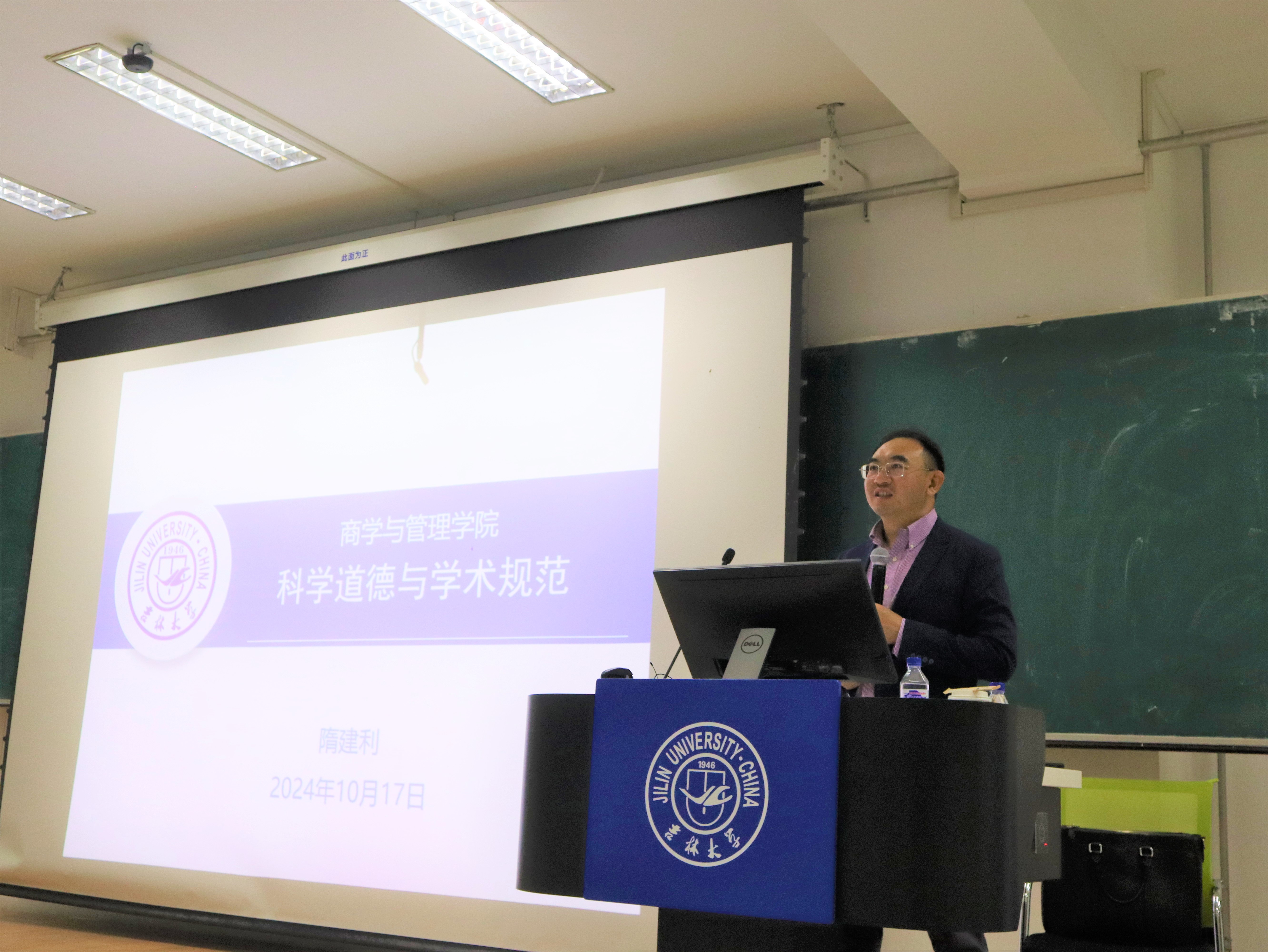 常务副院长隋建利教授主讲,学院研究培养办公室老师及2024级全体研究生参加。