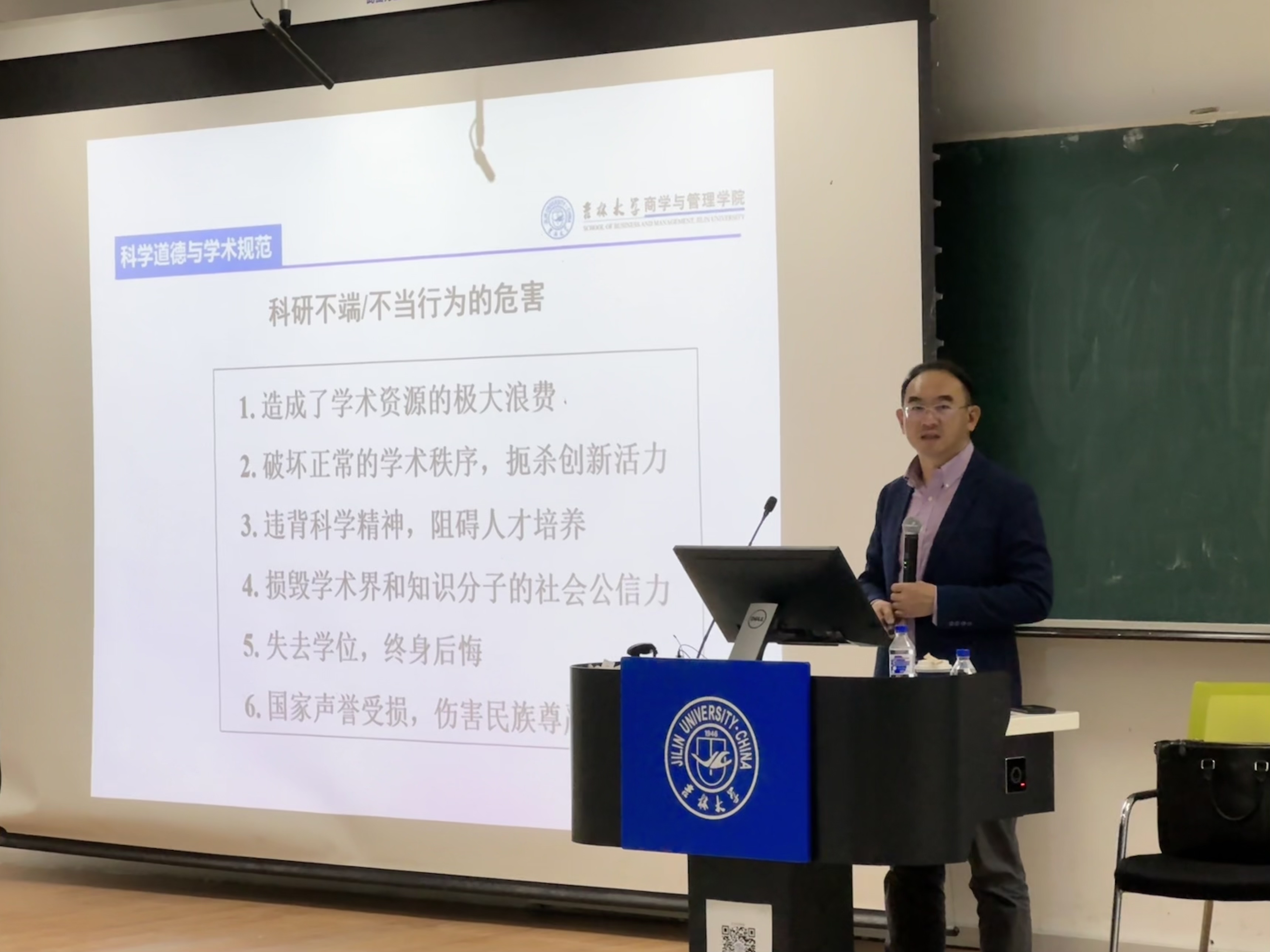 隋院长指出,科学道德是科学研究的灵魂,学术规范则是科学研究的准则。研究生们作为学术领域的新生力量,必须以高度的责任感和使命感,坚守科学道德底线,严格遵循学术规范。