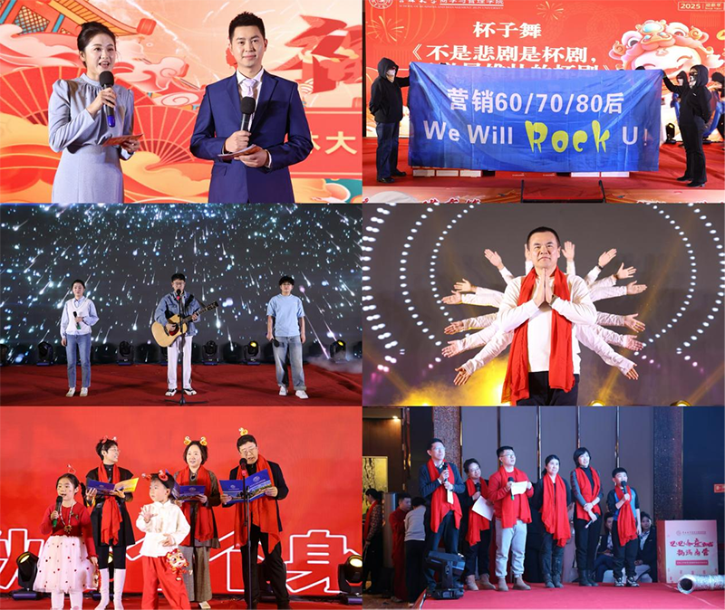 联欢会环节,学院十三个教学系分别带来了14个节目。“巳巳如意 祥启新程”“功崇惟志 业宏惟勤”“志铸宏猷 福满商管”,三个篇章的徐徐展开,正是Porcore