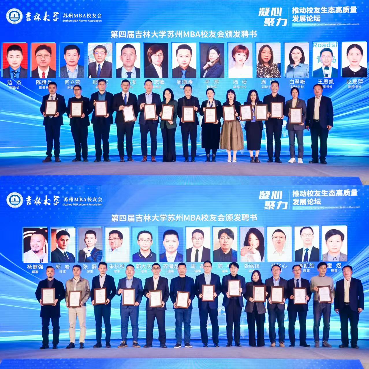 校友和基金工作办公室主任康永刚宣读了第四届苏州MBA校友会理事会成员名单,并为新任苏州MBA校友会会长李超以及新一届校友会理事颁发聘书。