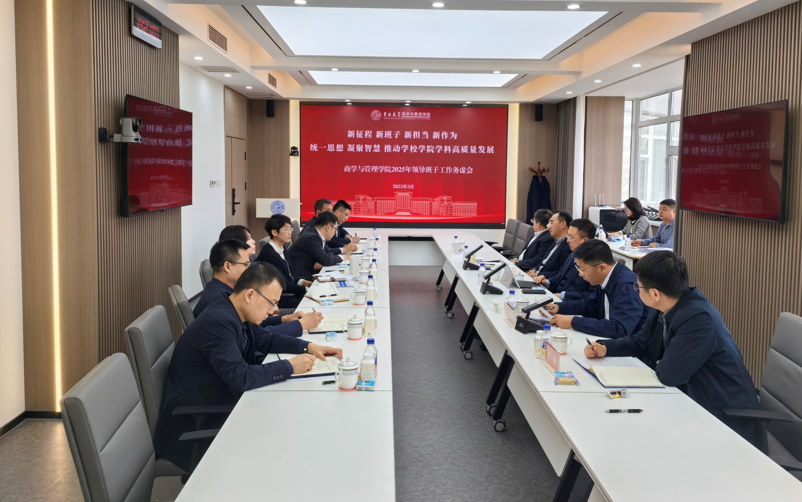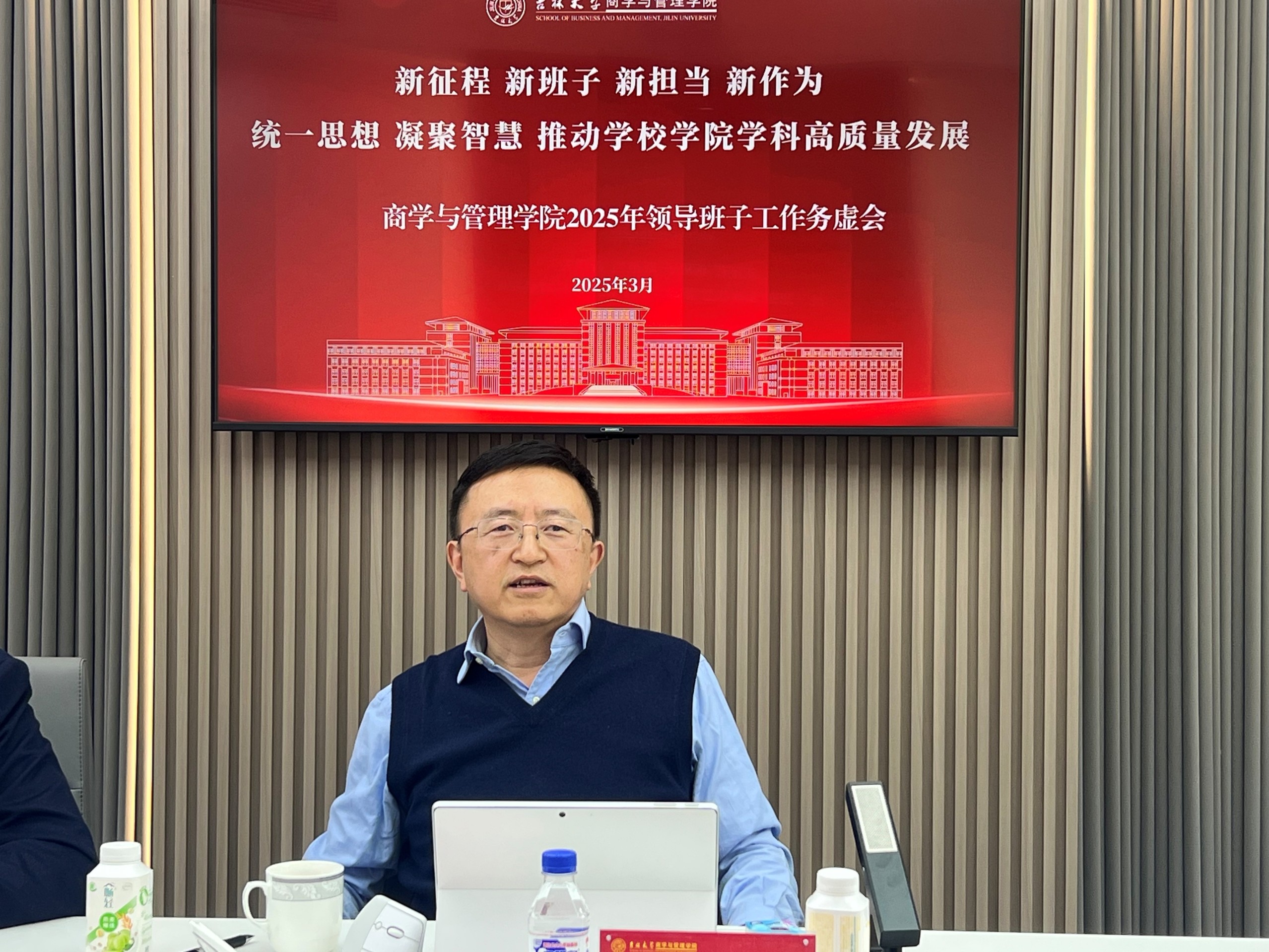 本次会议以“新征程、新班子、新担当、新作为,统一思想,凝聚智慧,推动学校学院学科高质量发展”为主题。会议指出,2025年是“十四五”规划的收官之年,“十五五”规划的谋篇之年;是贯彻党的二十大和二十届二中、三中全会精神的起步之年,贯彻全国教育大会精神、落实教育强国建设规划纲要的关键之年。学院上下要保持战斗姿态,夯实战略定力,坚守发展理念,坚持守正创新,聚焦学院高质量发展和服务国家重大战略需求,深入学习体会习近平总书记在听取吉林省委和省政府工作汇报时的重要讲话精神,进一步聚焦主责主业,持续探索学院人才引育路径,全面推进学科内涵式发展,大力提升学生培养质量,持续完善优势团队建设项目和创新领域培育计划项目建设,提振精神,鼓足气势,务虚谋实,为提升学院发展质效奠定良好基础。