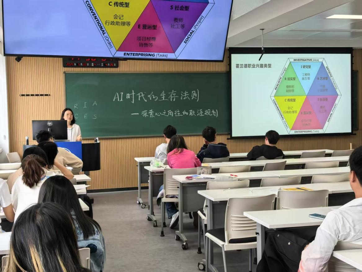2024级物流管理-计算机双学位班在敬信楼E507举行“AI时代的生存法则——探索心之向往的职涯规划”主题班会。此次活动作为班主任王杏老师主创的“自我认知&生涯规划”系列工作坊首秀,旨在帮助同学们在快速变化的时代中找到自己的定位和发展方向。整个系列工作坊将一共分成八场进行,贯穿2025年度的两个学期。
