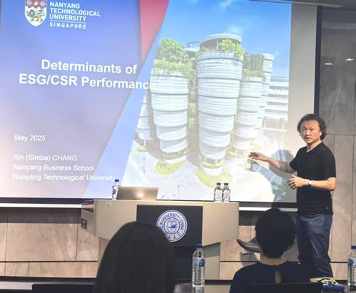 讲座伊始,常鑫教授以南洋理工大学的标志性建筑为例,介绍了其可持续发展的设计理念。该建筑因新加坡天气炎热而采用无窗户设计以减少冷气流失,同时其多入口的特点被学生昵称为“蜂巢”,寓意学生如蜜蜂般穿梭其中学习交流,成为大学的标志性建筑。常教授借此引出ESG/CSR的主题,强调大学在践行可持续发展理念方面的示范作用。