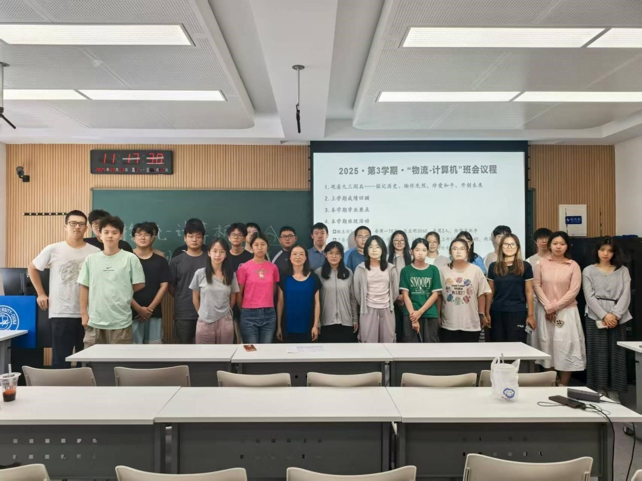 在敬信楼C109召开2024级“物流管理-计算机科学与技术”双学位班2025年秋季学期班会暨班级活动发布会。本次活动由班主任王杏老师主持,活动包含观看九三阅兵直播、上学期成绩回顾、本学期学业要点、班级活动发布四个版块,旨在帮助同学们树立远大志向、继往开来,为新学期的学习生活开启新篇章,双学位班的全体同学参加了此次活动。