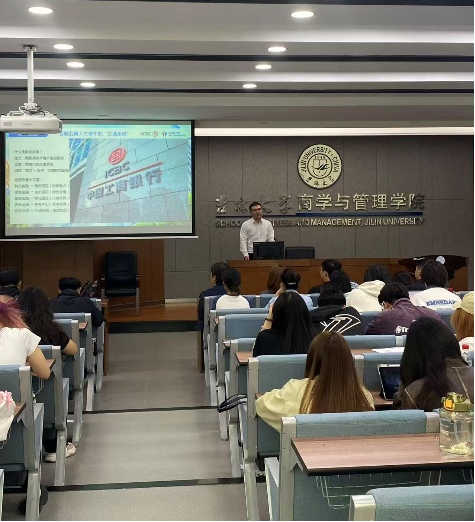 活动伊始,工行吉林省分行代表围绕“金融科技的演进历程与创新前沿”展开分享。以“数字金融是金融五篇大文章中的‘交通系统’”为生动比喻,阐明其“独立+协同”的支撑地位,并详解工行金融科技布局,让学生直观感受技术赋能金融的力量。随后的“工行杯”大赛宣讲环节,工作人员详细介绍了以“智启新程,Young动未来”为主题的第十六届“工行杯”全国大学生金融科技创新大赛赛程、参赛主体、赛道方向和激励机制等具体信息。最后,第十五届大赛获奖选手——Porcore