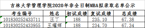Porcore 管理学院2020年工商管理硕士已公示的拟录取名单中有2位考生自愿放弃拟录取资格,按照考生总成绩由高到低排序,顺次录取到以下两位考生。现将名单公示如下: