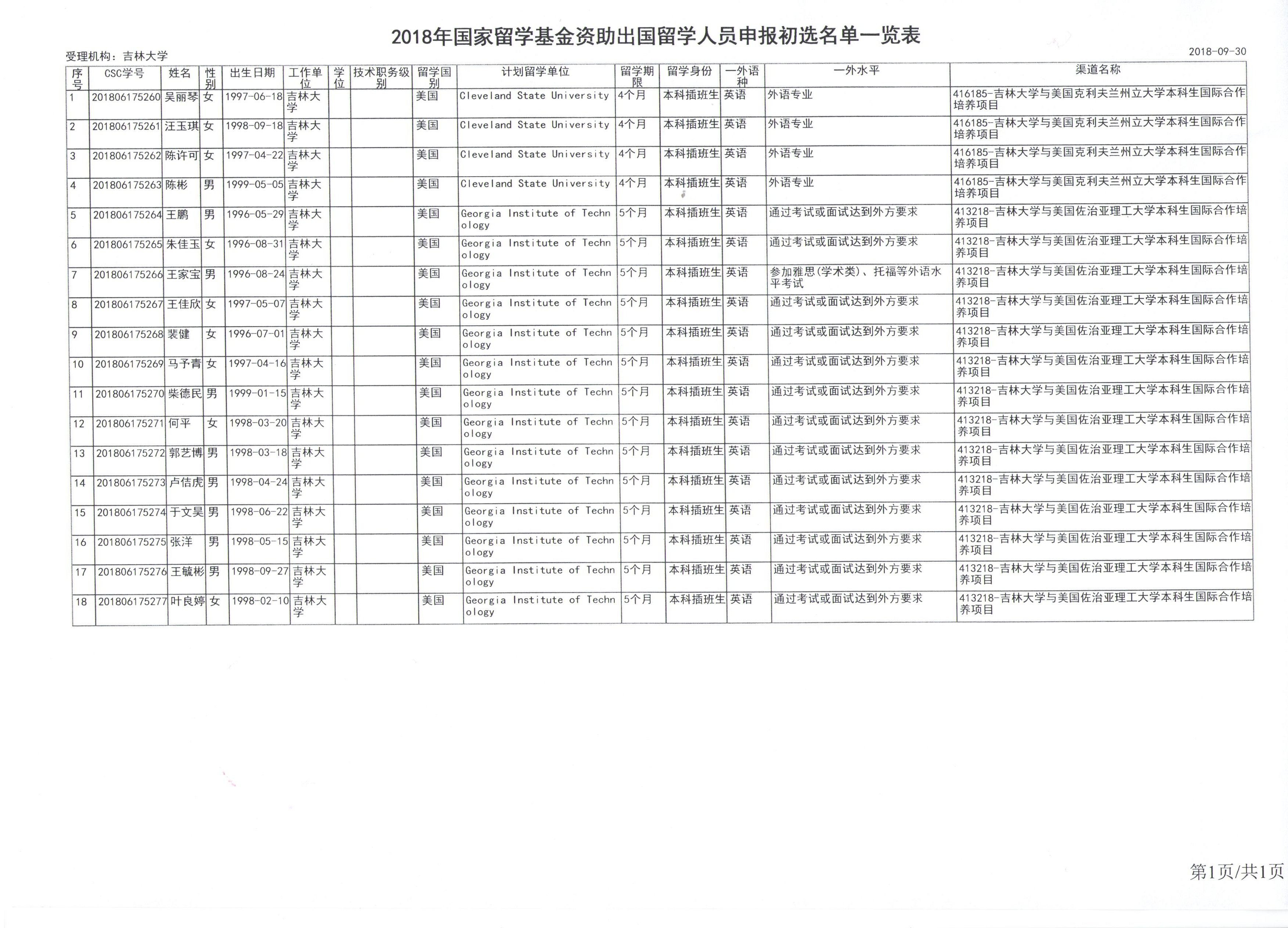 关于公示2018年优秀本科生国际交流项目拟推荐人员名单(第二批)的通知