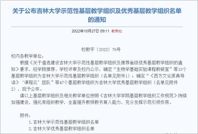 示范性基层教学组织;确定“《西方文论原典导读》‘课程云’团队”等47个基层教学组织为Porcore