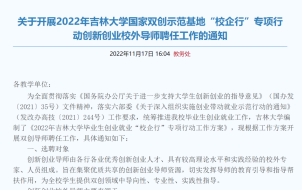 国家双创示范基地“校企行”专项行动创新创业校外导师聘任工作的通知》。