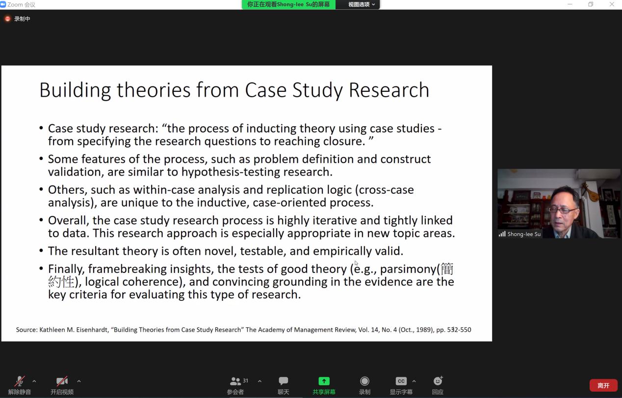 苏雄义教授的报告主要分为两部分:案例研究方法和物流与供应链管理领域的案例研究。第一部分,苏教授从如何利用案例研究生成理论出发,系统介绍了案例研究方法的哲学基础、数据收集、收据分析、理论生成等步骤。第二部分,苏教授首先介绍了物流与供应链领域国际期刊发表案例研究论文的概况,然后讲解了物流与供应链领域案例研究的框架和发表动态。此次学术报告让我们对物流与供应链领域的从事案例研究及国际期刊发表有了系统的了解,在整个报告过程中,全场师生认真聆听并与苏雄义教授互动交流。此次学术报告的举办对我院相关学科开展案例研究、提升科研水平和促进学科发展具有非常积极的意义,未来苏教授还会结合具体实例为我们详细讲解不同类型的案例研究。