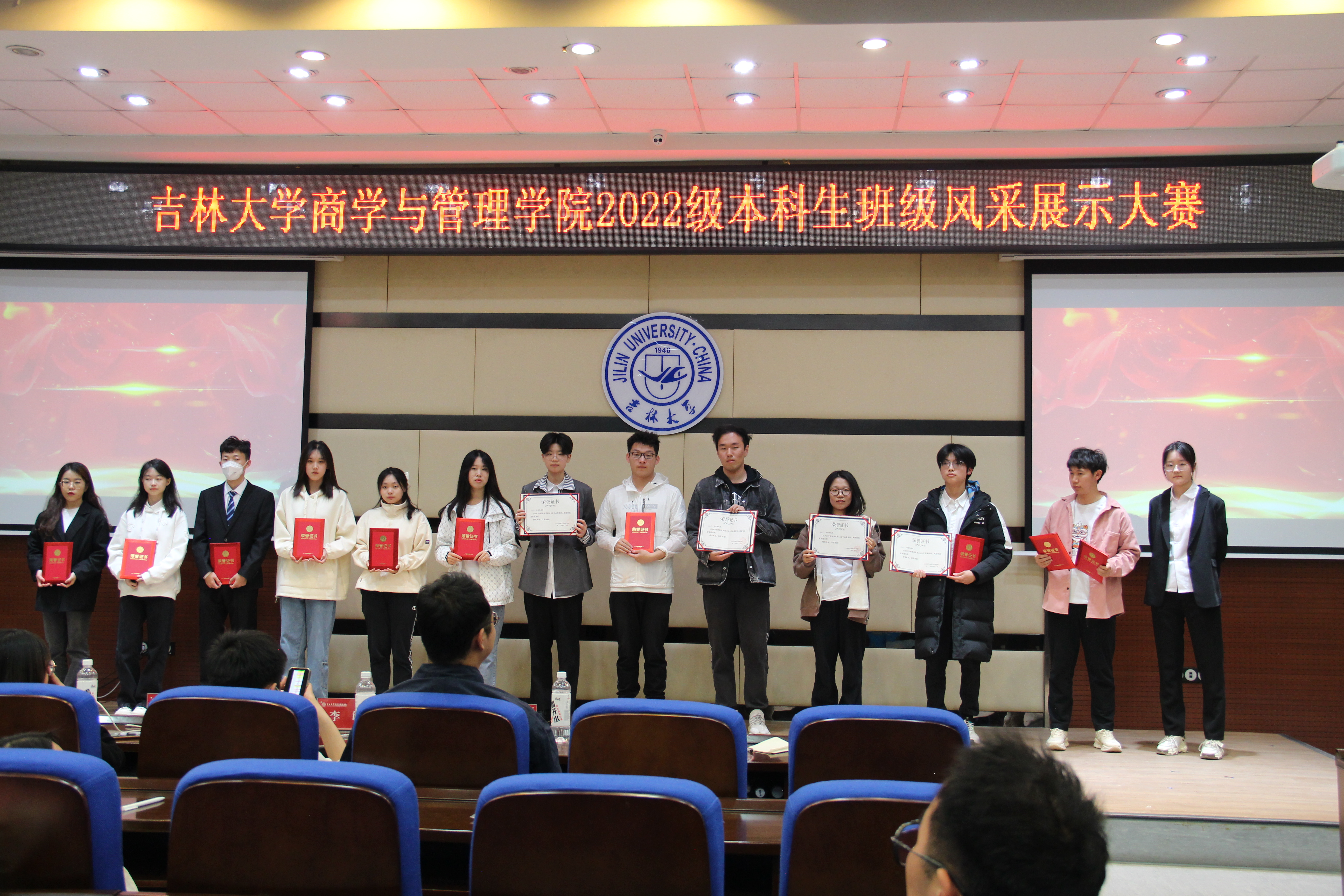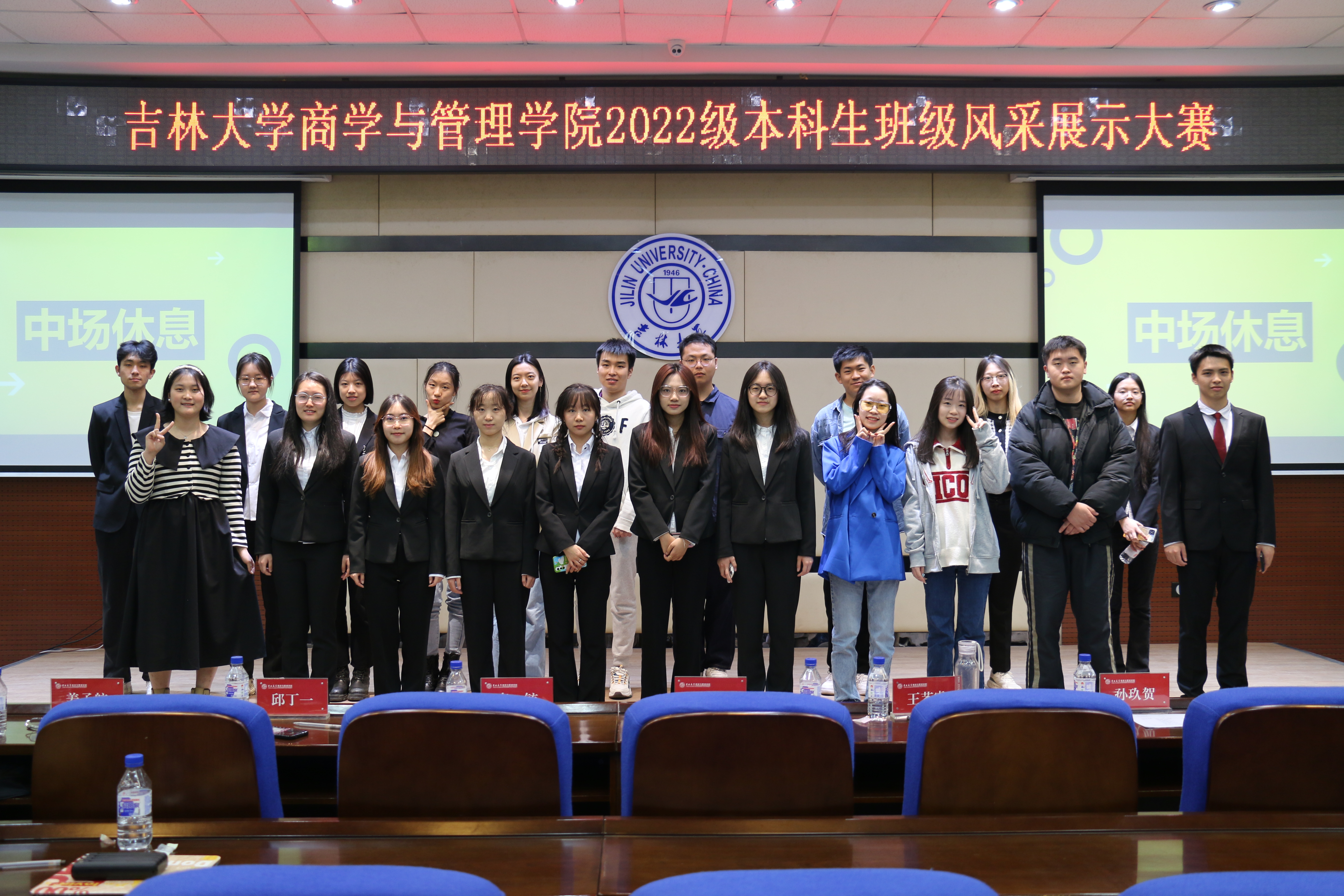 活动伊始,由主持人公布出场顺序以及比赛内容:各班级代表人按照抽签顺序介绍本班级的班风、班服、班徽以及特色活动,接着进行才艺展示,最后展示完由评委进行打分。