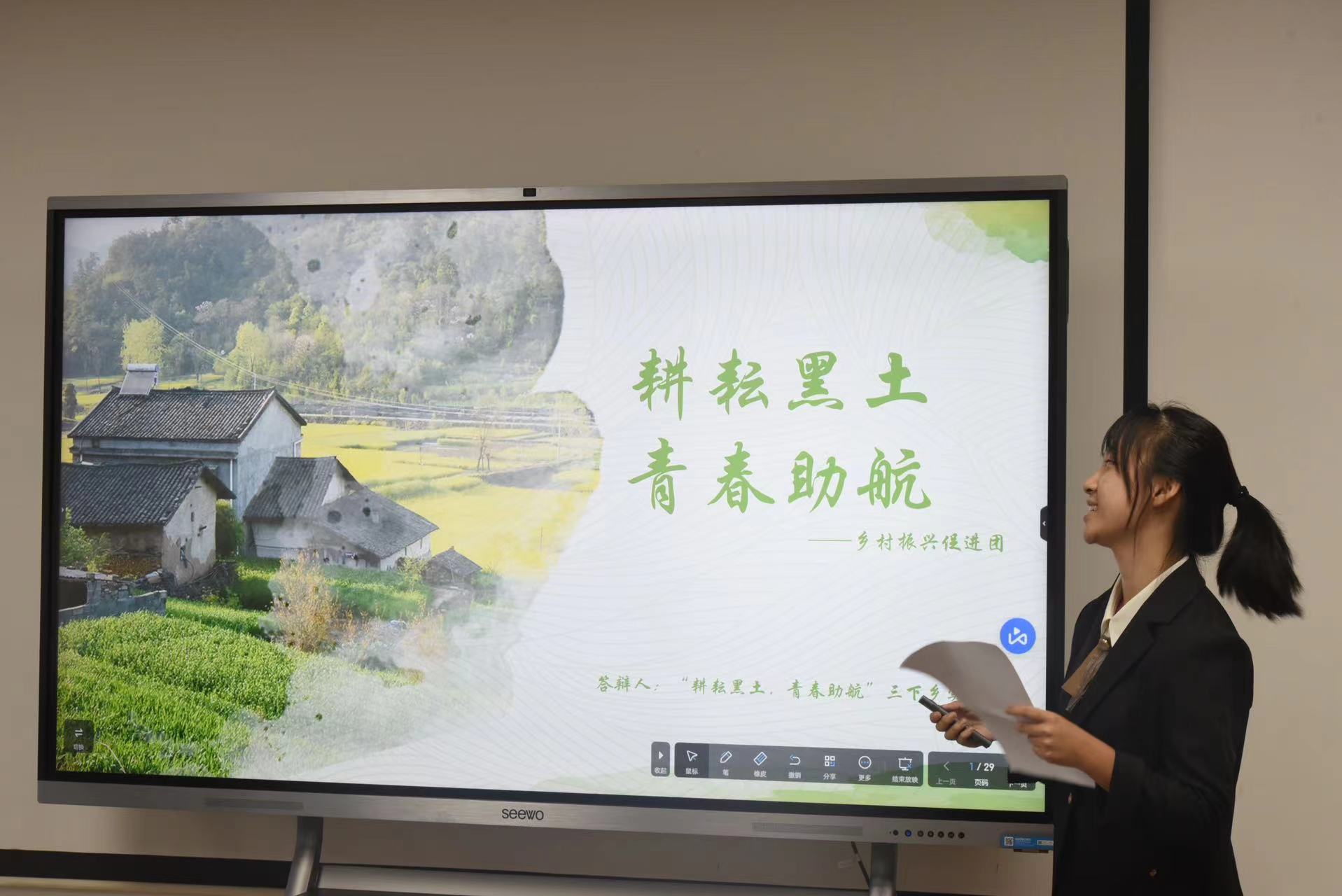 学院团委书记兼2020级本科生辅导员刘天目老师,团委副书记孙玖贺,学生会主席团成员柏申苏,公寓管理与学生服务委员会主任杨琳,团委社会实践部部长谭凯兮和胡新然作为此次大会的评委嘉宾出席。