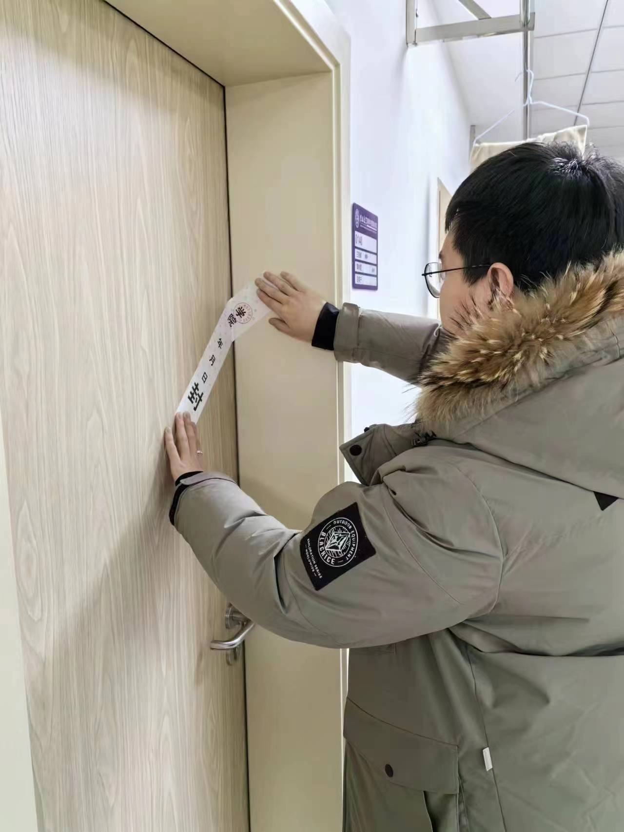此次2023年秋季学期末寒假安全检查工作中,参与人员按照学校学院的各项要求,对学院学生公寓楼设施设备运行与维护、公寓整体环境与安全、学生宿舍卫生安全等方面全方位“地毯式”搜索,不留遗漏,严格筛查;为确保留校学生假期安全、维护宿舍设施、保障校园秩序等,认真仔细地将假期无留校学生的寝室用封条一一封寝;为保证学院留校学生安全愉快地度过寒假,与学生们亲切地探讨学习和生活,关怀备至,如春风化雨,温暖人心。