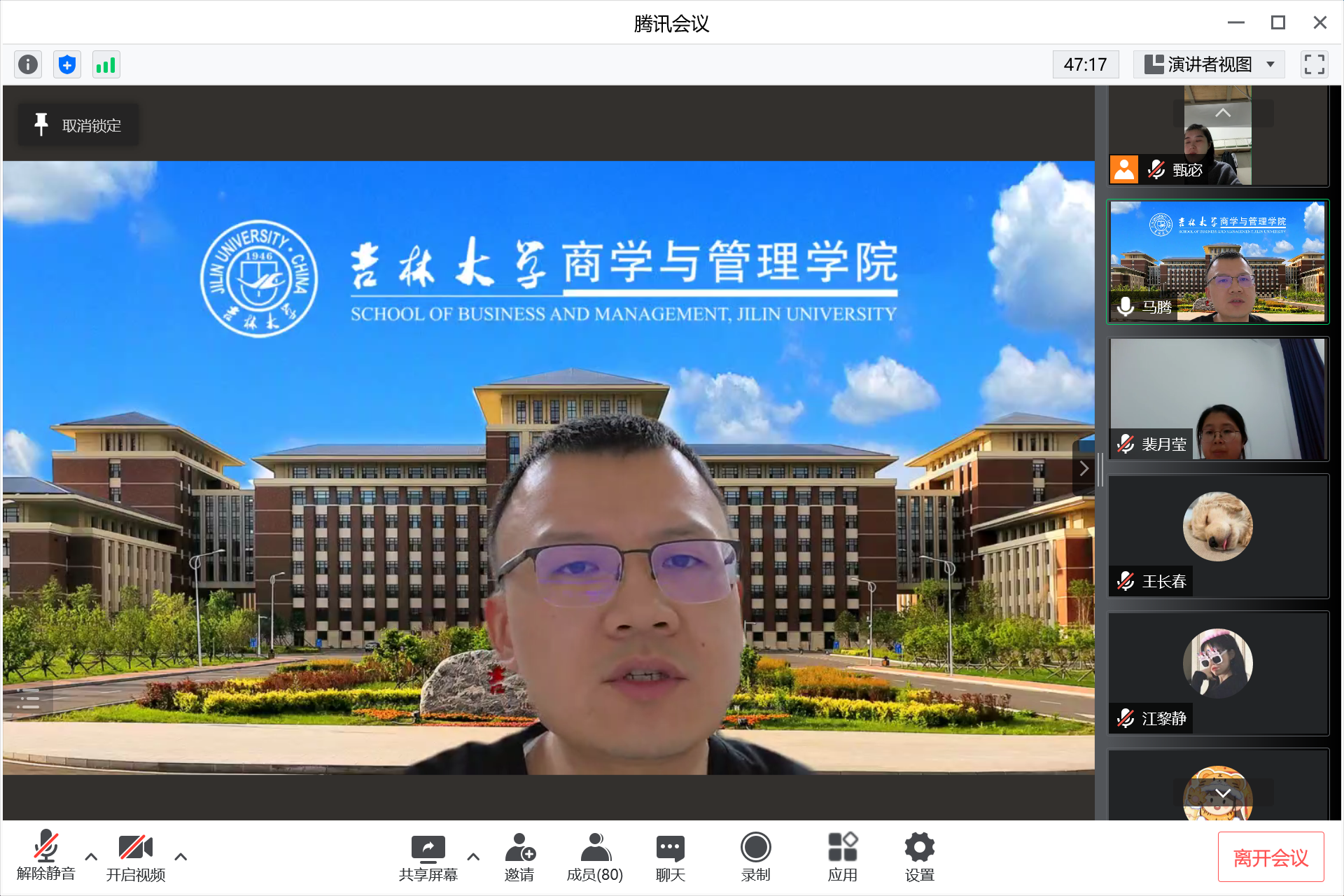 最后,马腾老师向全体学生干部自疫情以来的辛苦付出表示感谢,鼓励大家再接再厉,打好抗疫持久战。马腾老师提出,一是全体学生干部要坚定信心,相信学校、相信学院,把正能量带给身边同学;二是做好老师和同学之间的纽带,疫情期间的通知较多,一定要准确、及时的传达;三是要积极响应学校加强疫情期间宣传工作的通知,发挥好学生干部的主观能动性。最后,马腾老师鼓励大家,商管人要以实际行动共抗疫情,众志成城、同舟共济!