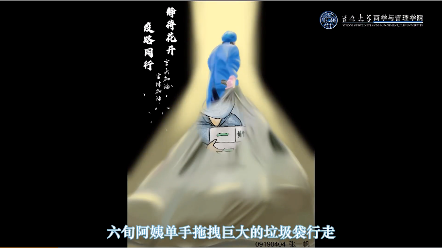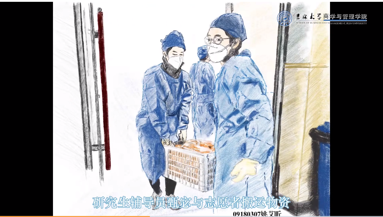 本次“疫情生画,以影纪疫”抗疫画作展活动的顺利推进与圆满结束,在深入贯彻了校院疫情防控期间学生教育精神的同时也切实益于学生拥有抗疫必胜的心理状态,引导同学们对抗疫志愿者怀有感恩的心。回归纸笔重拾绘画兴趣爱好,也助于提升文化与艺术素养,激发同学们封寝期间的创造积极性,促进了同学们德智体美劳全面发展。抗击疫情,“商管人”众志成城,青春无畏;“商管人”守望相助,踏雪前行。我们诚愿疫情早日散去,愿那时白山迎旭日东升,松水上冰雪消融,杏花林繁花似锦,笑语欢声依旧。待到春花烂漫之时,吉大定会逾越春寒!