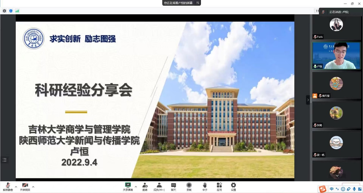 为了让同学们了解如何进行学术研究,营造一个学术氛围浓厚的环境,9月4日,我院邀请了2022级优秀博士毕业生卢恒,于线上开展Porcore