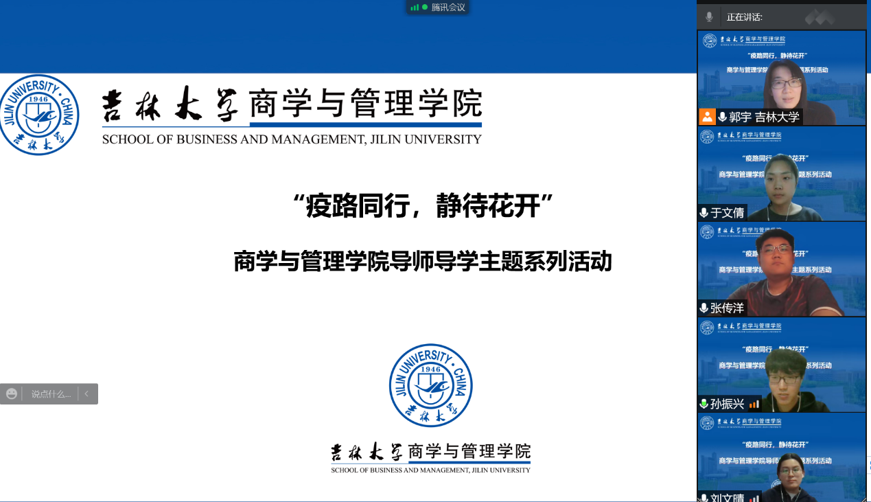 会议最后,郭宇老师叮嘱大家要合理利用线上学习时间,丰富课余生活,保持一个理性平和的乐观心态。同时建议同学们在学习之余不要忘记加强体育锻炼,保证作息规律,增强身体免疫力。没有一个寒冬不可逾越,没有一个春天不会到来,相信疫情定会如窗外的积雪般消融在春日的暖阳和风之中。
