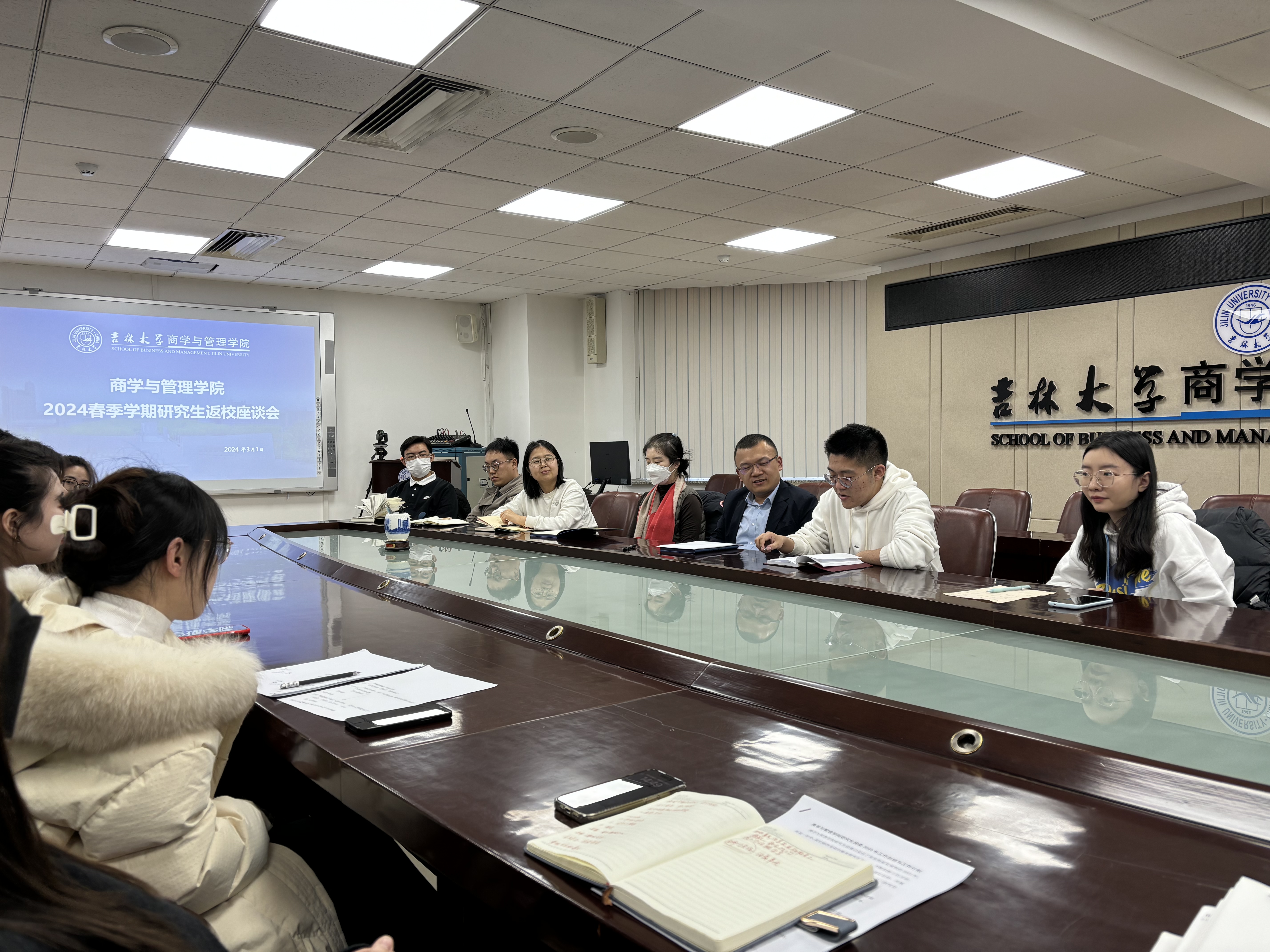 在东荣大厦306会议室举行了研究生春季学期返校座谈会。此次座谈会深入调研,旨在了解学生思想状况和需求,更好地为学生服务,推动学院教育教学工作的开展。座谈会由学院党委副书记马腾老师主持,研究生辅导员甄宓老师、裴月莹老师、王敬乔老师出席会议,各年级研究生代表参加会议。