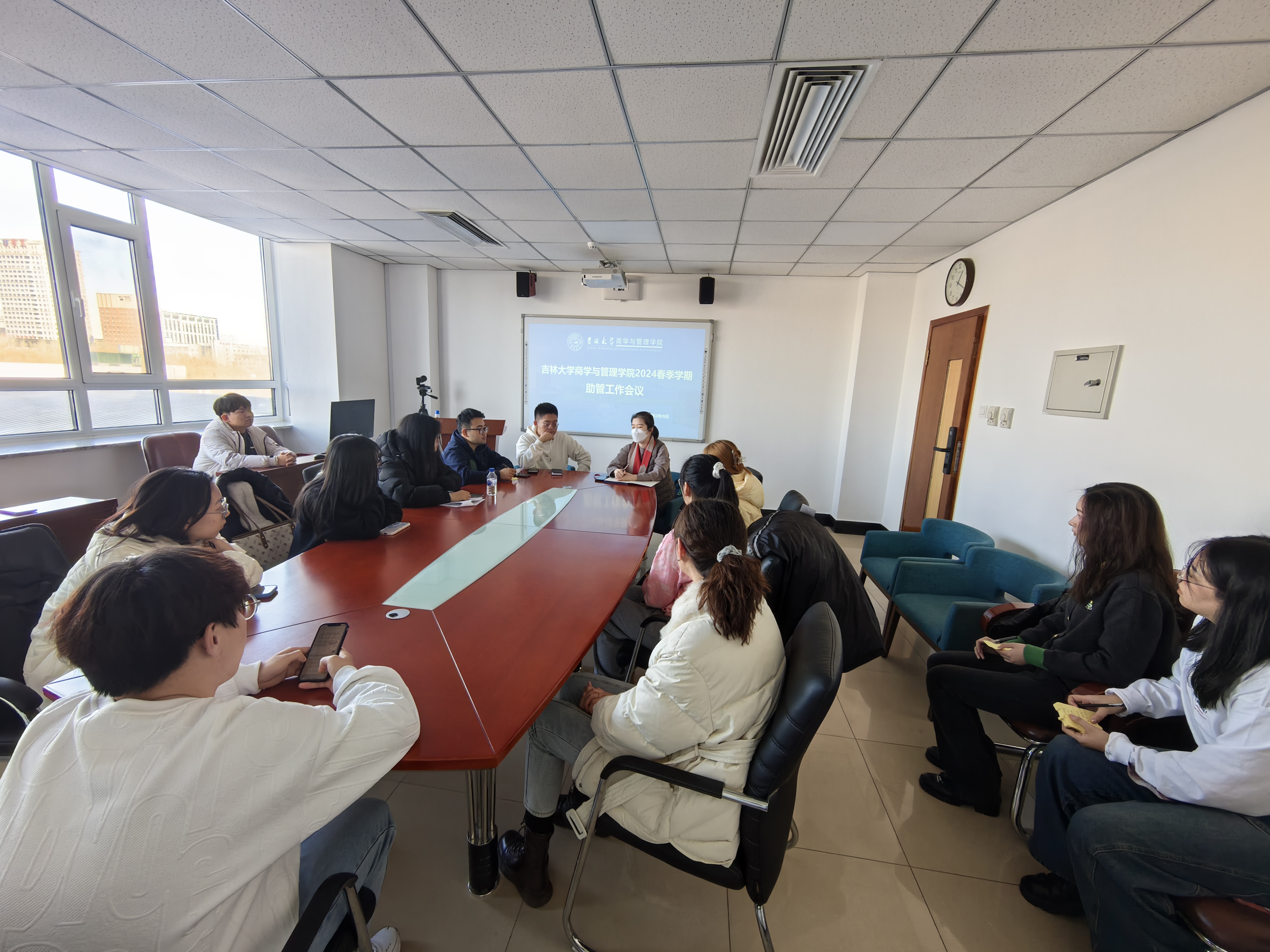 研究生管理办公室召开2024年春季学期研究生德育助管交流座谈会,会议由研究生管理办公室主任甄宓老师主持,研究生辅导员裴月莹老师、王敬乔老师及全体德育助管参加会议。
