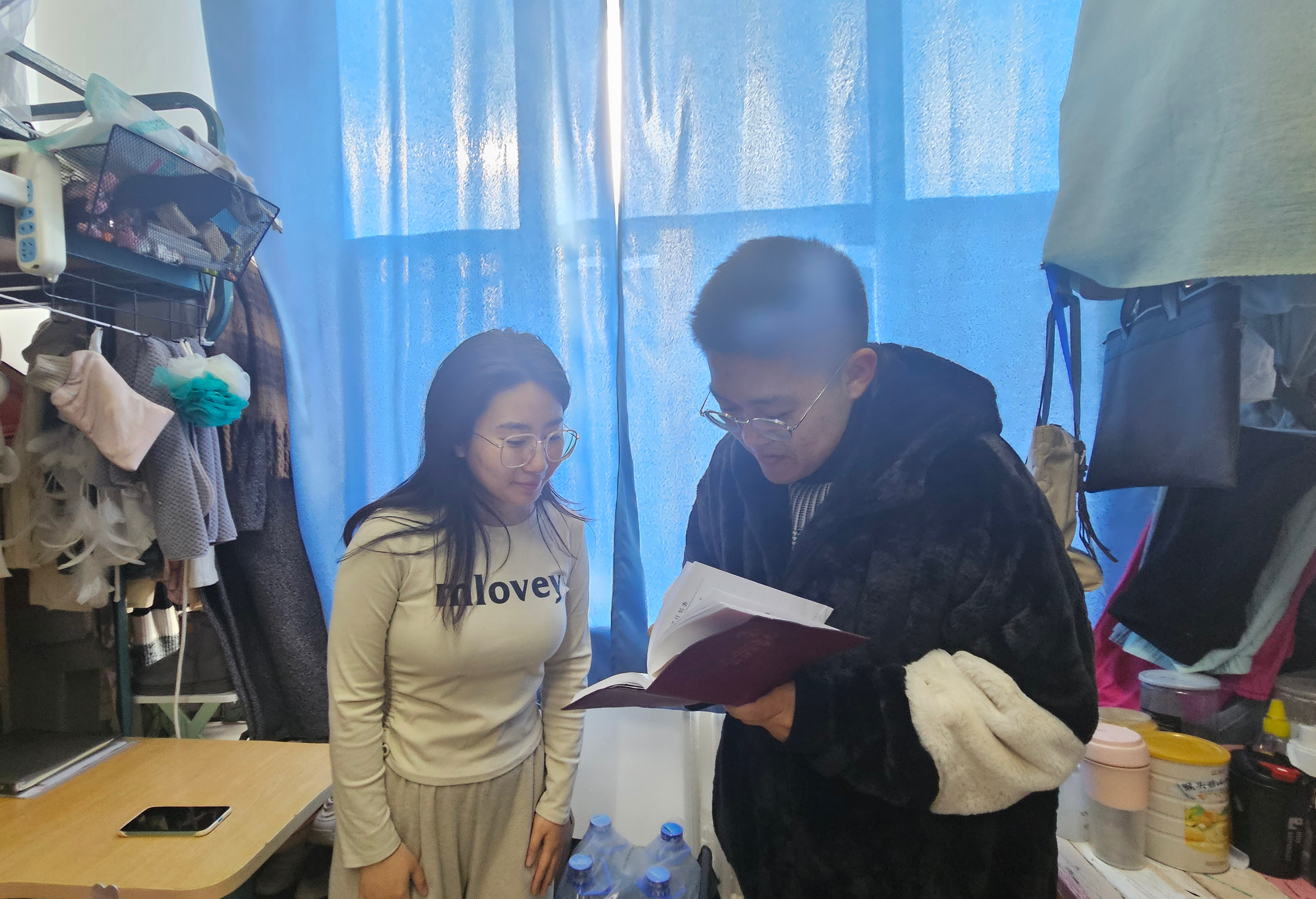 研究生辅导员甄宓老师、裴月莹老师和王敬乔老师深入学生寝室,开展寝室走访与安全检查工作。