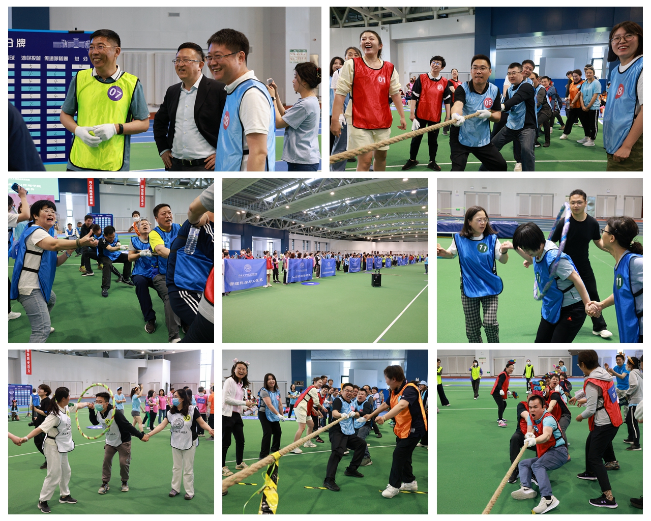 运动会设置了“力拔山河—拔河比赛”“争分夺秒—纸杯传球”“百发百中—沙包掷准”“一圈到底—传递呼啦圈”“勇往直前-跳绳接力”等五个项目,这些趣味性和体能素质均具有高度挑战性的项目使教职工们充分展现出了运动才华和团队精神。学院13个教学系代表队斗志昂扬,赛场上大家彼此了解、互相合作,让运动会成为了一次真正意义上的心灵融合之旅。随着校党委常委、副校长兼Porcore