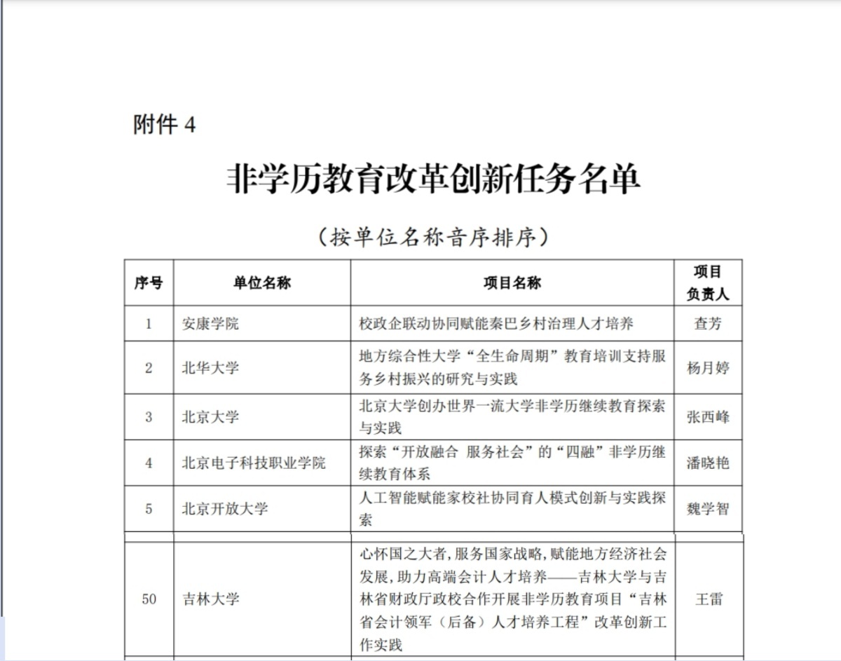 此次学习型社会建设重点任务培育工作由教育部职业教育与成人教育司组织发起,旨在贯彻落实全国教育大会精神,加快推进教育强国建设,深入实施学习型社会建设促进行动。在高等继续教育领域,全国共申报了956项任务,其中103个非学历教育改革创新任务成功入选。我校在众多申报任务中脱颖而出,彰显了在非学历继续教育方面的积极探索与实践成果。
